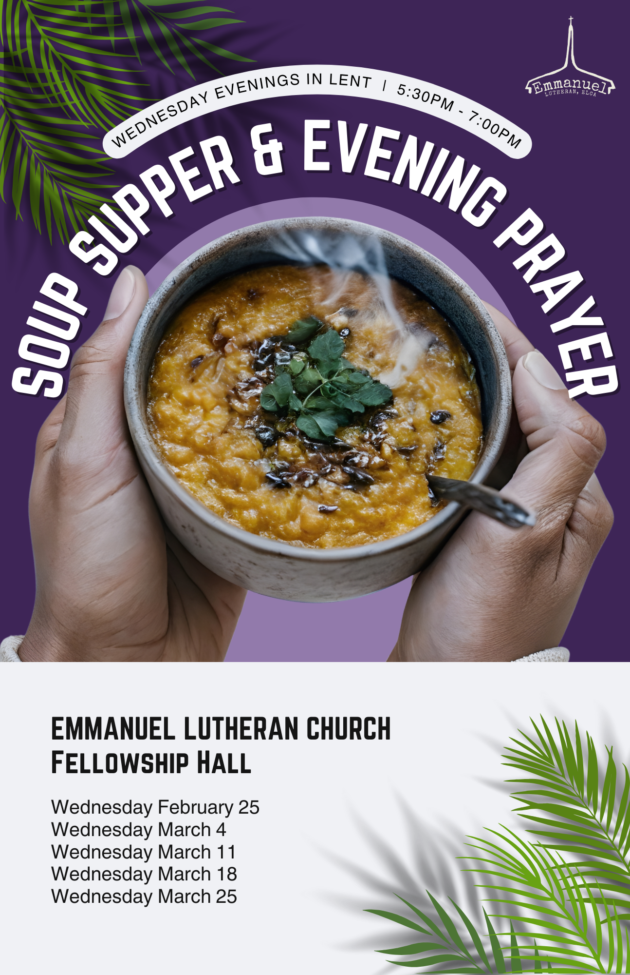 Emmanuel’s Ash Wednesday Service will be held at 6:30pm in the Sanctuary.